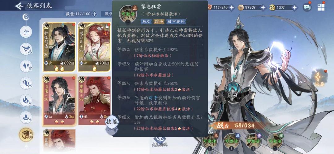 等级3:友方其他侠客行动后,60%概率获得1层英姿,每层使追击怒攻概率提升7%,追击怒攻伤害系数提升3%,可叠加10层