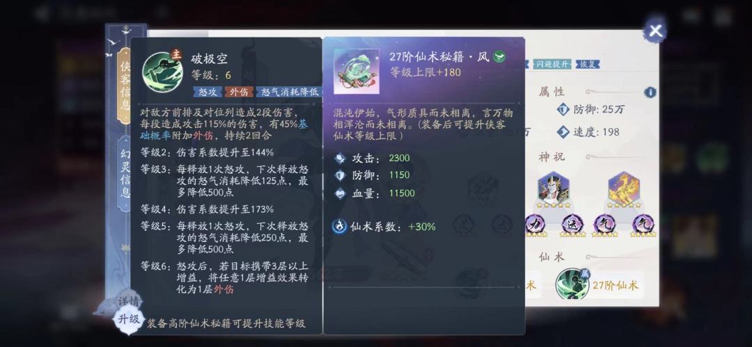 专属仙术一、怒攻提供的吸血效果强化至35%,护盾转化效率提升至100%