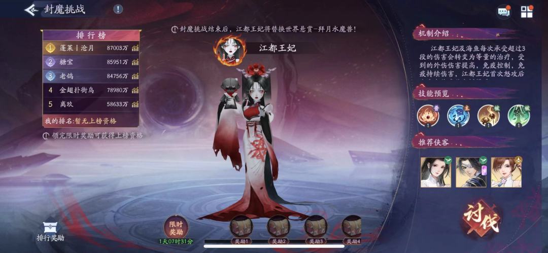 1.可以打悬赏boss王妃,王妃吃外伤,外伤打王妃有加成。为了拿悬赏boss奖励的宝子可以拉越祈(目前boss这么多,为啥要盯着一个王妃不放)不过拉了飞蓬还不能打boss,越祈可以打boss这点必须给满分