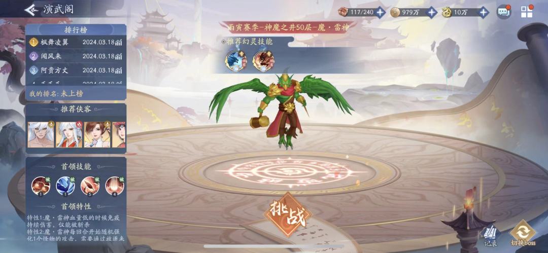 3.越祈可以打神魔boss1、boss3、boss4,