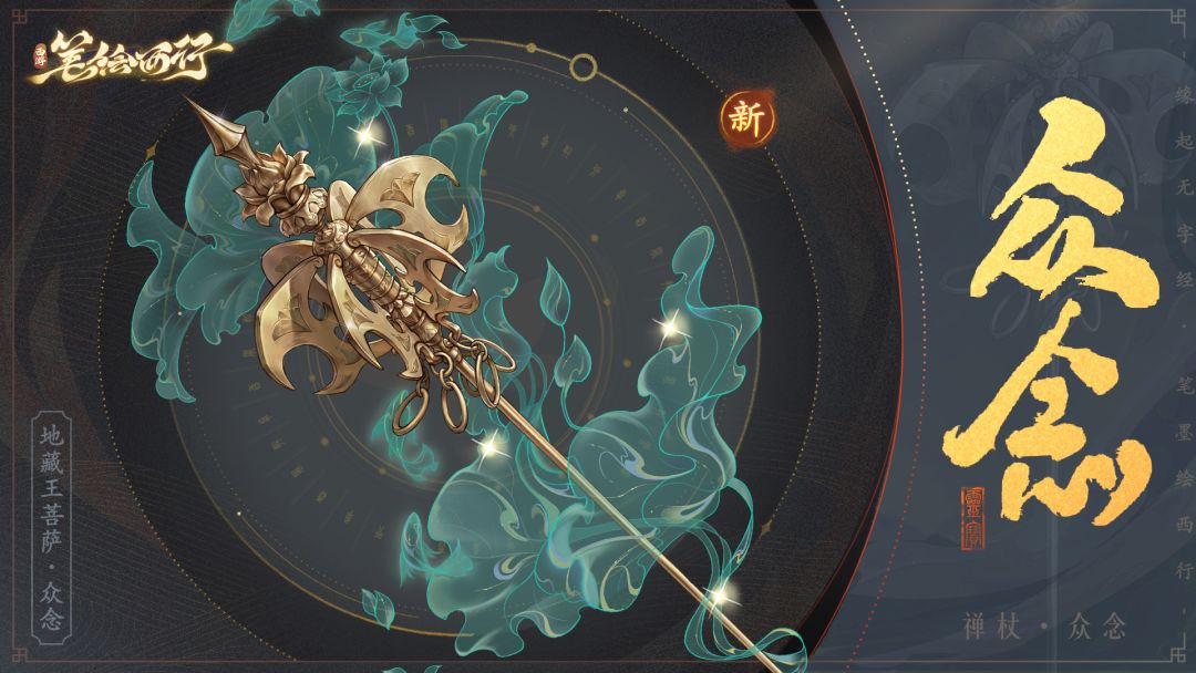 地藏王菩萨拄持的禅杖。地藏王顿悟之时,地崩山摧,万灵陷落,诸生枉灰。菩萨聚众念为杖,以负其业重。