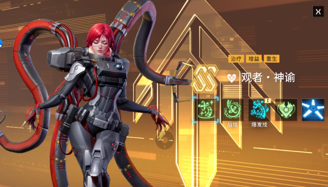 小编个人觉得观者·神谕的适配急救者植入体套装,特别是4件套触发的套装效果,重装和支援类战员队友生命值低于50%时,为其附件生命值百分比的护盾,每次战斗每个队友至多触发一次。而且观者·神谕得专属植入体有2个速度词条,经过超频后,跻身速度T1阶别战员前三。
