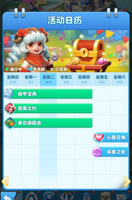 2、 活动日历内将为各位旅行者展示活动主题名称、活动开放时长、以及活动日期的信息。