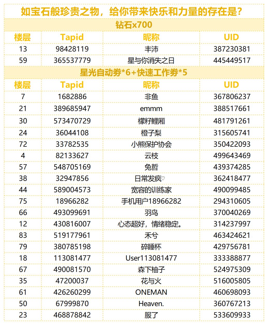 制作人们久等啦,让我们恭喜以下幸运的制作人们!