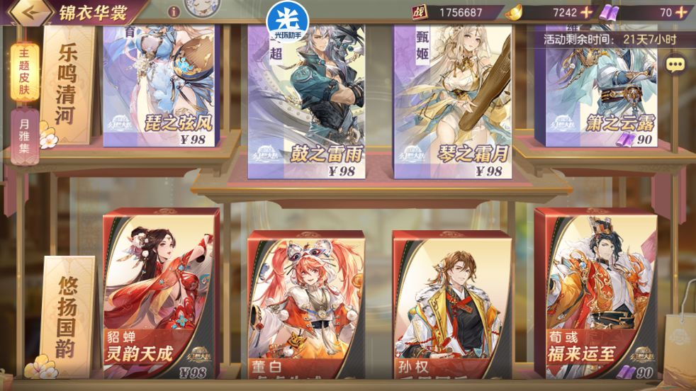白嫖玩家可以买4个绸缎皮肤,还挺好的。准备入手一个姜维的皮肤。