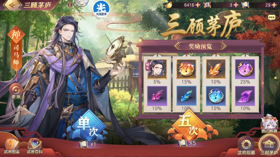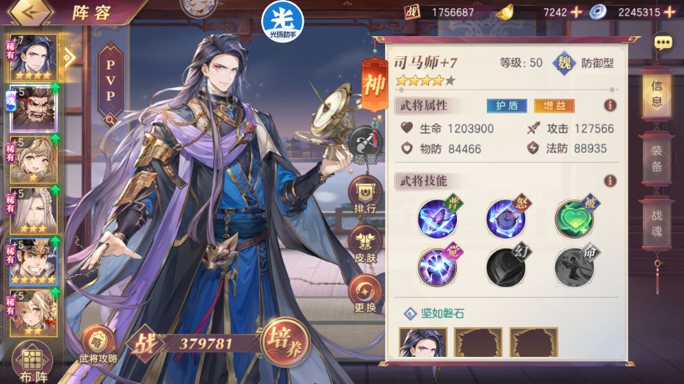 幸好三顾出来了2个司马师,然后用碎片兑换,司马师刚好升到4星。