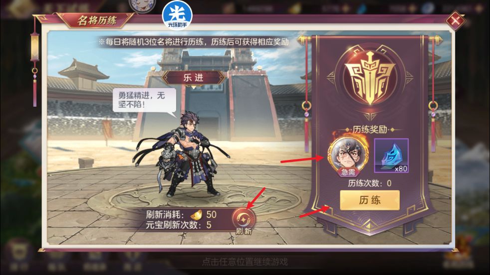 这个如果看到是金色的将魂才历练。如果没有就刷新出金色再历练,每天可以搞三个金色的,就算历练完了。