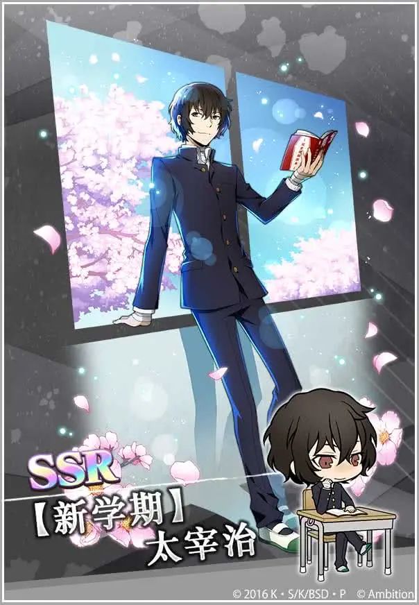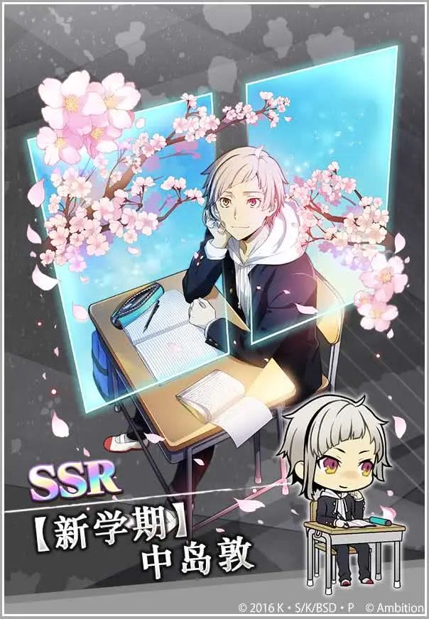 STEP6时必得限定SSR【新学期】中岛敦、SSR【新学期】太宰治、SSR【新学期】中原中也、SSR【新学期】芥川龙之介其中之一,