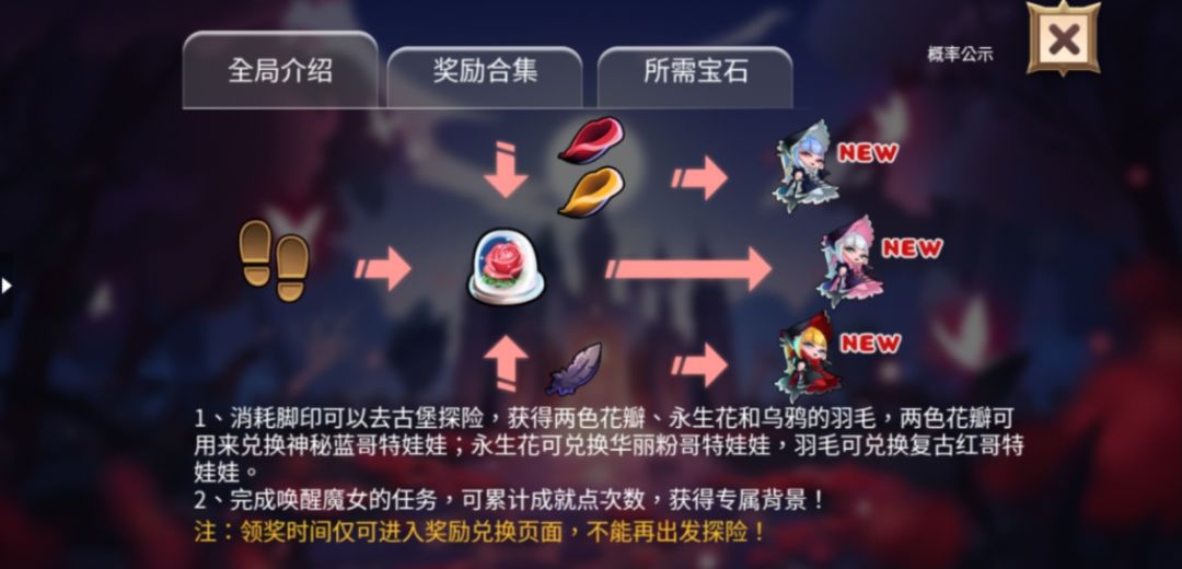 古堡迷踪活动上线啦!森林深处隐藏着一座神秘的古堡,让我们跟随着3位神秘的哥特娃娃一起开启神秘的探险吧~