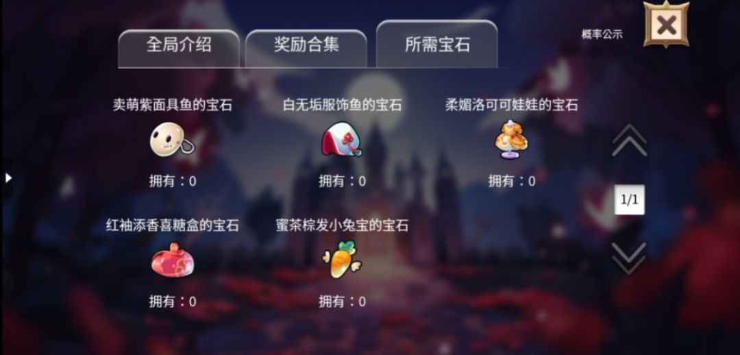 2、活动需要的宝石为: