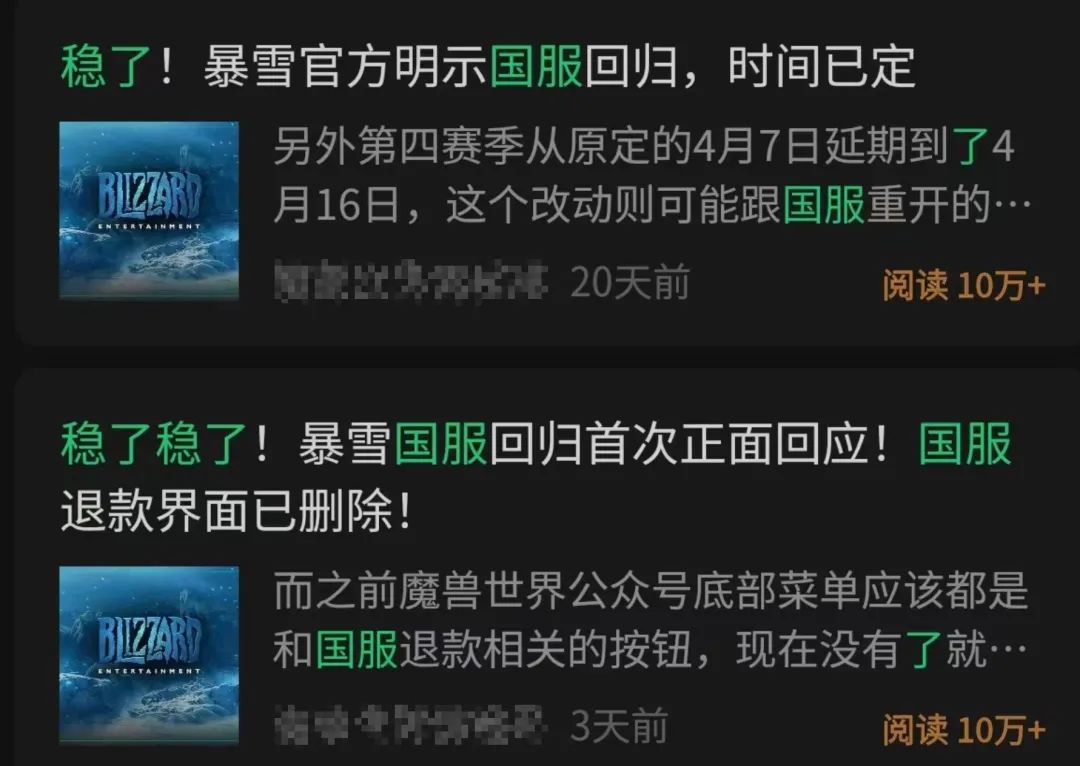 如果说还有谁输麻了的话,那可能就是前段时间每天靠着发“暴雪国服稳了”这种内容刷了不知道多少篇10W+阅读的营销号了吧。