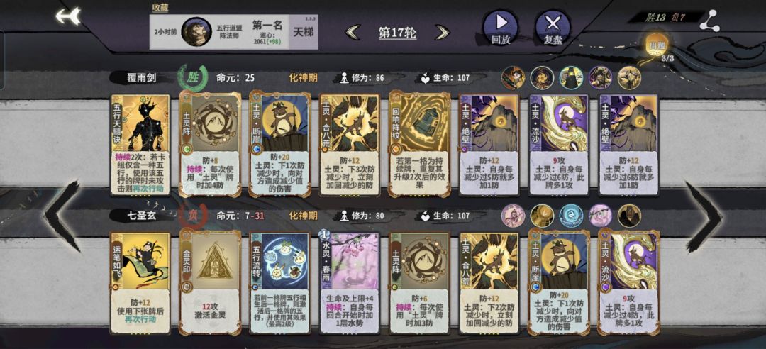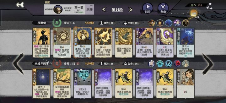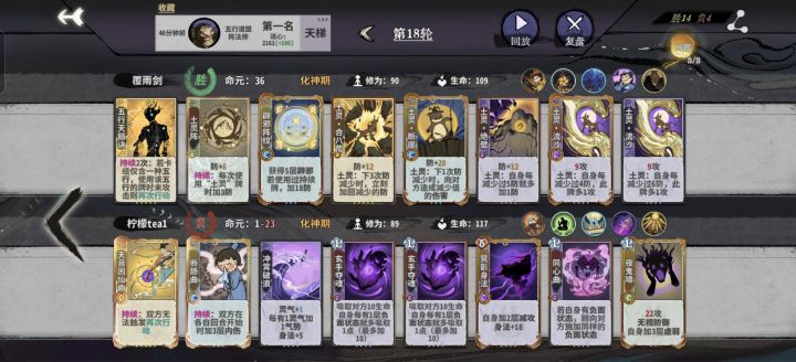 在金仙期用吾行之对战了不少,思路清晰了分享下。吾行之有四套阵容元婴战神答辩过渡阵土和阵水和丹木,答辩只能算过渡答辩不好抽阵土阵水丹木上限更高,要吃鸡化神肯定要转型的。