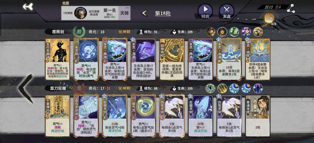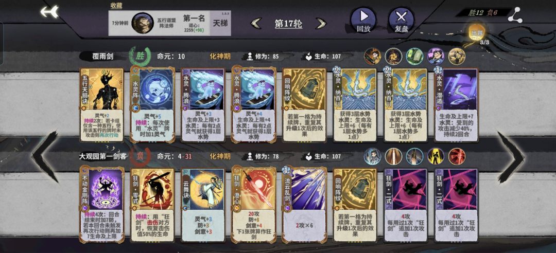 练气三轮上本,一般用两套水木火或者土金,前3轮都可以D空,然后每轮D一下改善牌组质量,如果五行内战副职丹比较好有护体丹博弈,其它门派就阵法,仙命筑基和化神选本命其它优先修为拿牌,8轮上元婴D空组答辩一套,10轮还没D出答辩一套不要等了卖牌直接转后期阵容,答辩没质量打的真的痛苦![[表情_捂脸哭]](https://img.tapimg.com/market/images/83aa452eea88b5c64df710bca367b7e9.png)