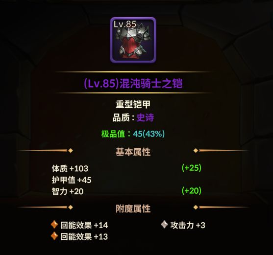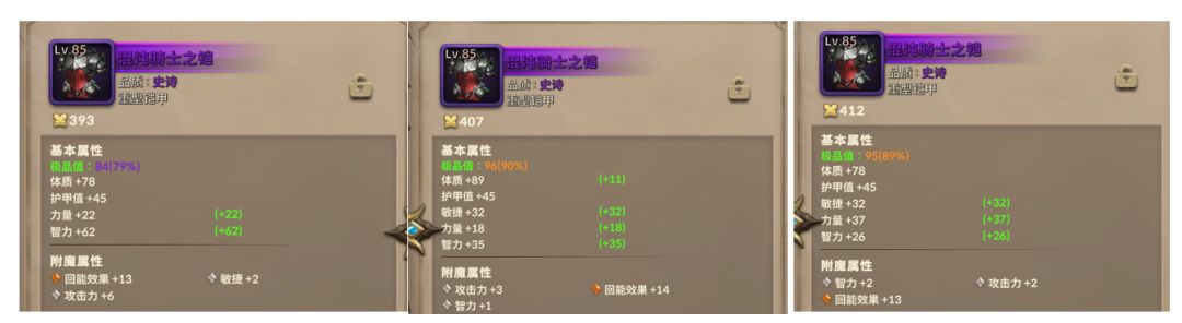1、85铠甲的【回能效果】值得保留。 就是说3条硬洗,先出绝对防御就留绝对防御,先出回能效果就留回能效果。