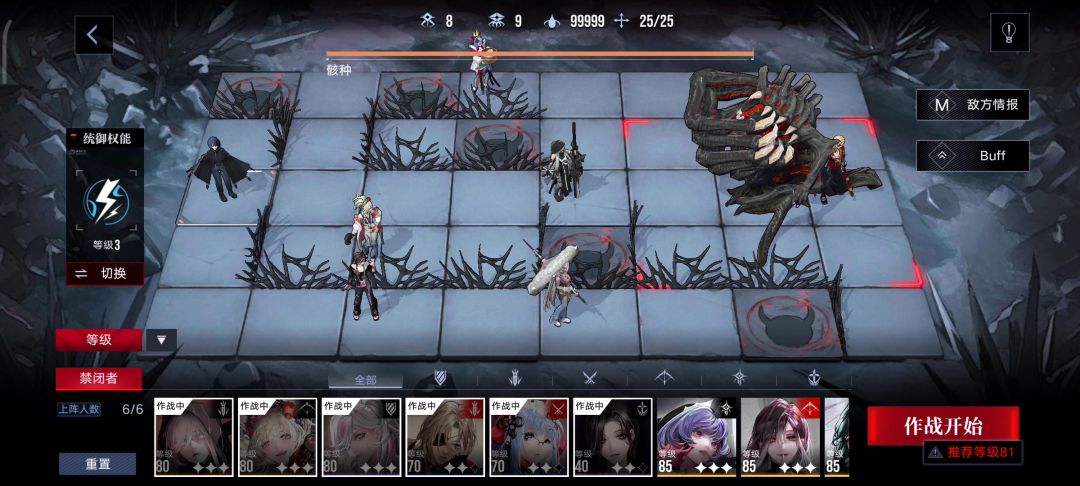 因为我的思路是要尽量压低配置,毕安卡暂时不想再提升,而戈蓝、肖恩又没有太大提升价值。纠结一番之后,还是把戈蓝的被动从7级升到9级,但依然收效甚微。所以最终的解决方案,就只能从【破绽队】之外去找了。