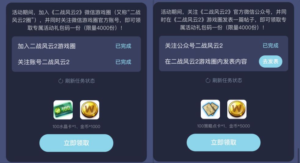 进入《二战风云2》公众微信号,点击菜单【游戏资讯】,进入游戏圈