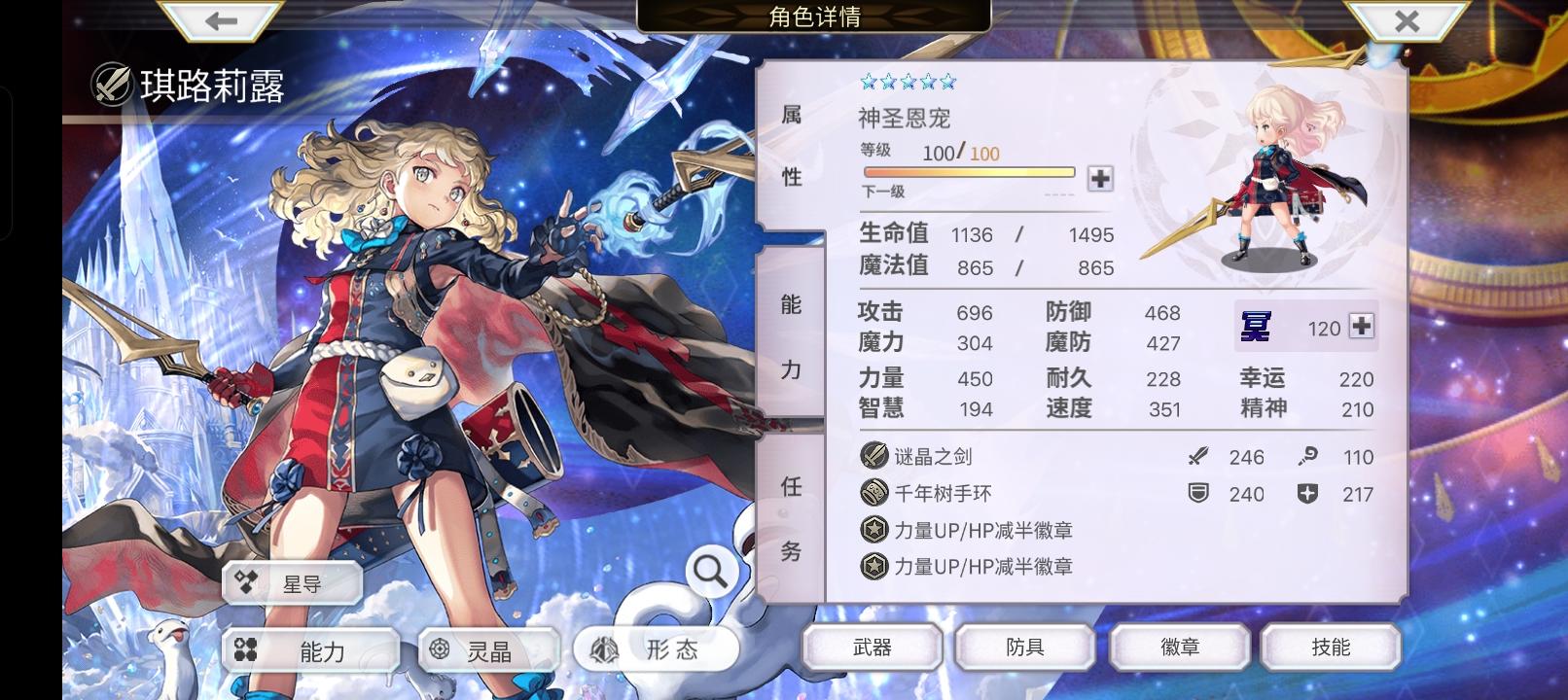 后排两灵晶架(经验位)一个带的是:低下剑、健全剑、结晶剑;另一个带的是:全能之力圣职者、全能之力西方、最大西方(最大吃不到,因为好看就带着了)