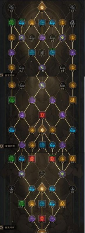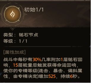 优先将5个铭石孔点亮,其次点亮所有主属性孔1级,补齐其余专精、冷却孔使属性达到34%暴击率或42%暴击率、10冷却,最后多余的点数可以激活3级1层核心增加命运回响效果的持续时间。