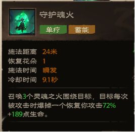 当前版本的守护魂火配合天赋与灵魂链接进行联动,可以造成可观的群疗,在团本中有不俗表现。