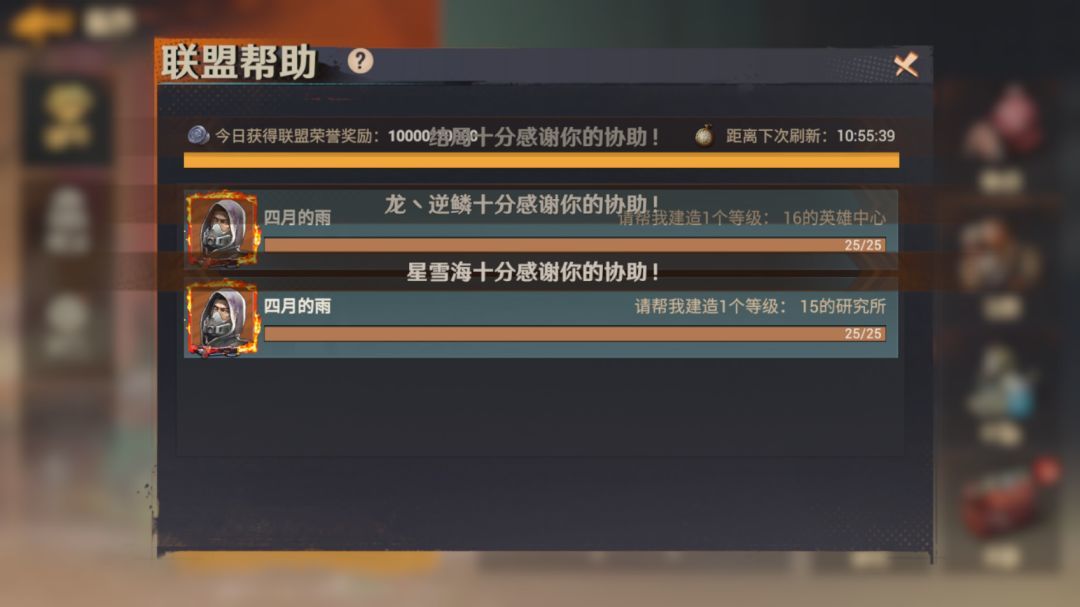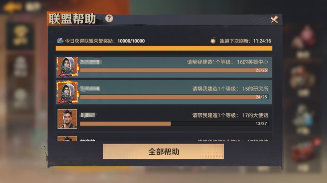 1、积极帮助盟友加速帮助是相互的,除了为了每天1万的联盟荣耀外,现在帮助盟友发展,未来你会收获一个更强大的队友。