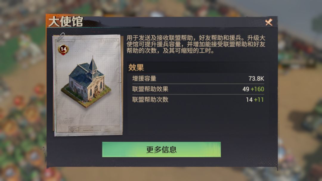 注:如果想要自己能获得更多的援兵,一定要注意提升大使馆的等级,增加增援容量。