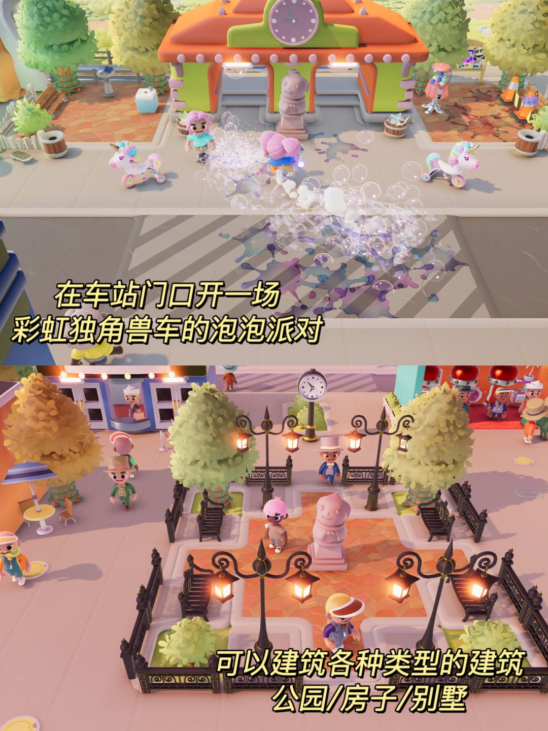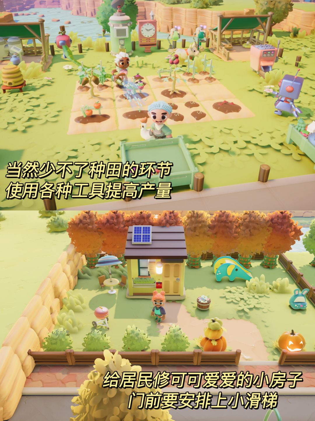 可可爱爱的多人联机种田建造游戏🎣人物以及画面都是萌萌的,可以骑各种可爱的小车车,滑滑梯,采蘑菇砍树,种田钓鱼,挖矿开店