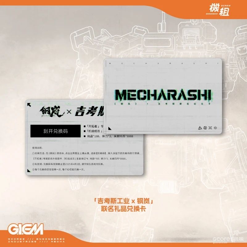 前往钢岚官方微信公众号或官方B站,在吉考斯工业×钢岚推送下方评论区留言,分享你最喜欢的修理机甲与原因,我们将从中随机抽选指挥官赠送全套「吉考斯工业 × 钢岚」联名系列服饰。