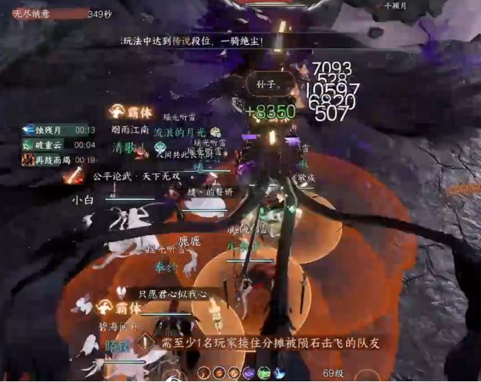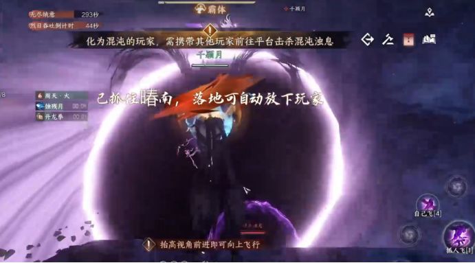 第二次变小混沌,抓人起飞,进入平台上混沌浊息的圈内,击杀三个混沌浊息可以让BOSS进入破防姿态!