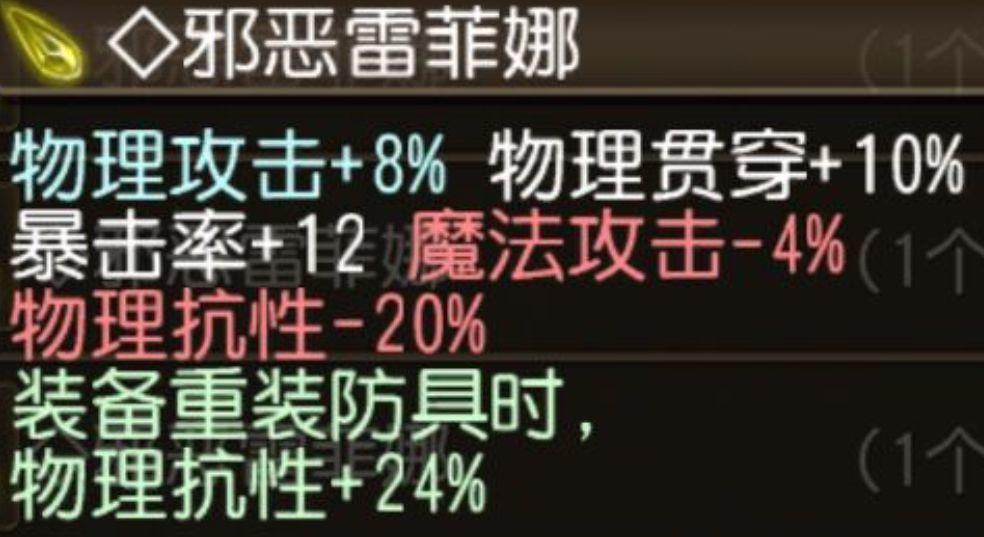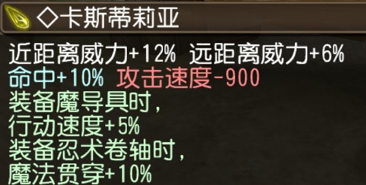 [ATK+8% 近距离威力+8% 物理贯穿+8% 暴击率+75 魔法抗性-15% 咏唱速度-100% 闪躲回复-50%]