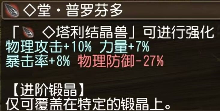 [力量+7%, 物理攻击+8%, 破防9% ,异常抗性-10% ]