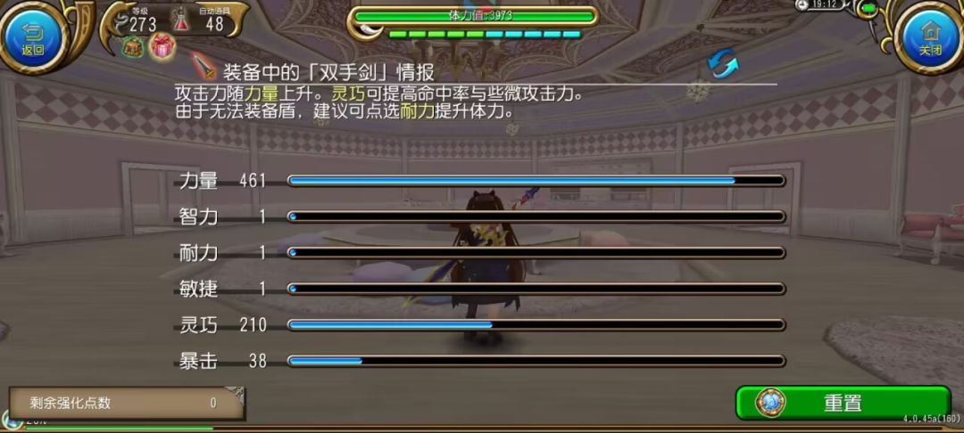正常(可能有点极端)纯输出大剑的加点 主点力量 副点灵巧 再酌情点38点左右(以上)的暴击