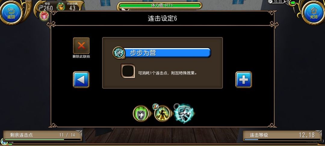 前期刷连击点数的参考:尽量塞一些低蓝技能反复释放,连击点够了就往里面塞技能,一定要完整释放完整个连击才加连击熟练度。