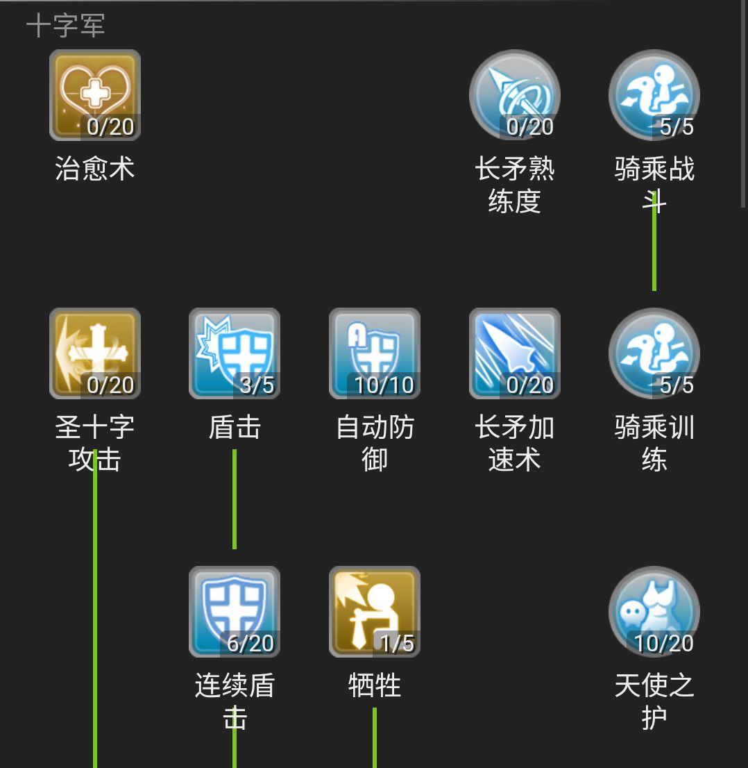 连续盾击10、长矛熟练度10、骑乘战斗5、