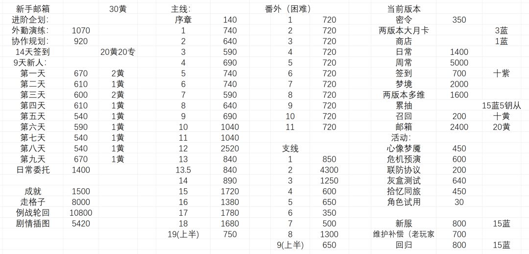 - 攒水效率:支线>主线番外>主线普通