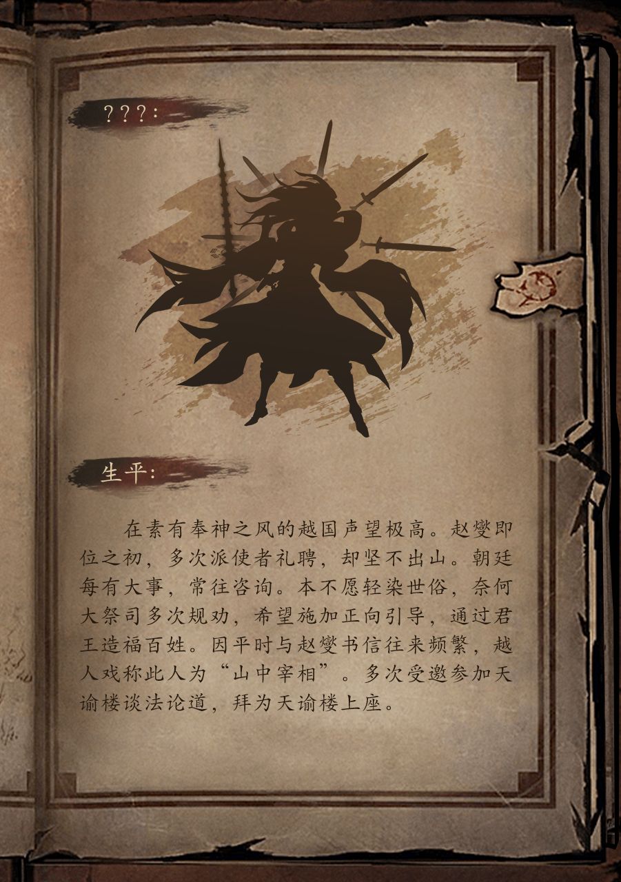 今日还请劳烦继续补全见闻录残缺处,越国“宰相”,十五岁便隐居深山,游历各地名山。二十岁作《寻山志》声名大噪,后接过师父衣钵执掌上清派,后因越国君主时常拜访讨论国家大事,被越国人民戏称“山中宰相”。