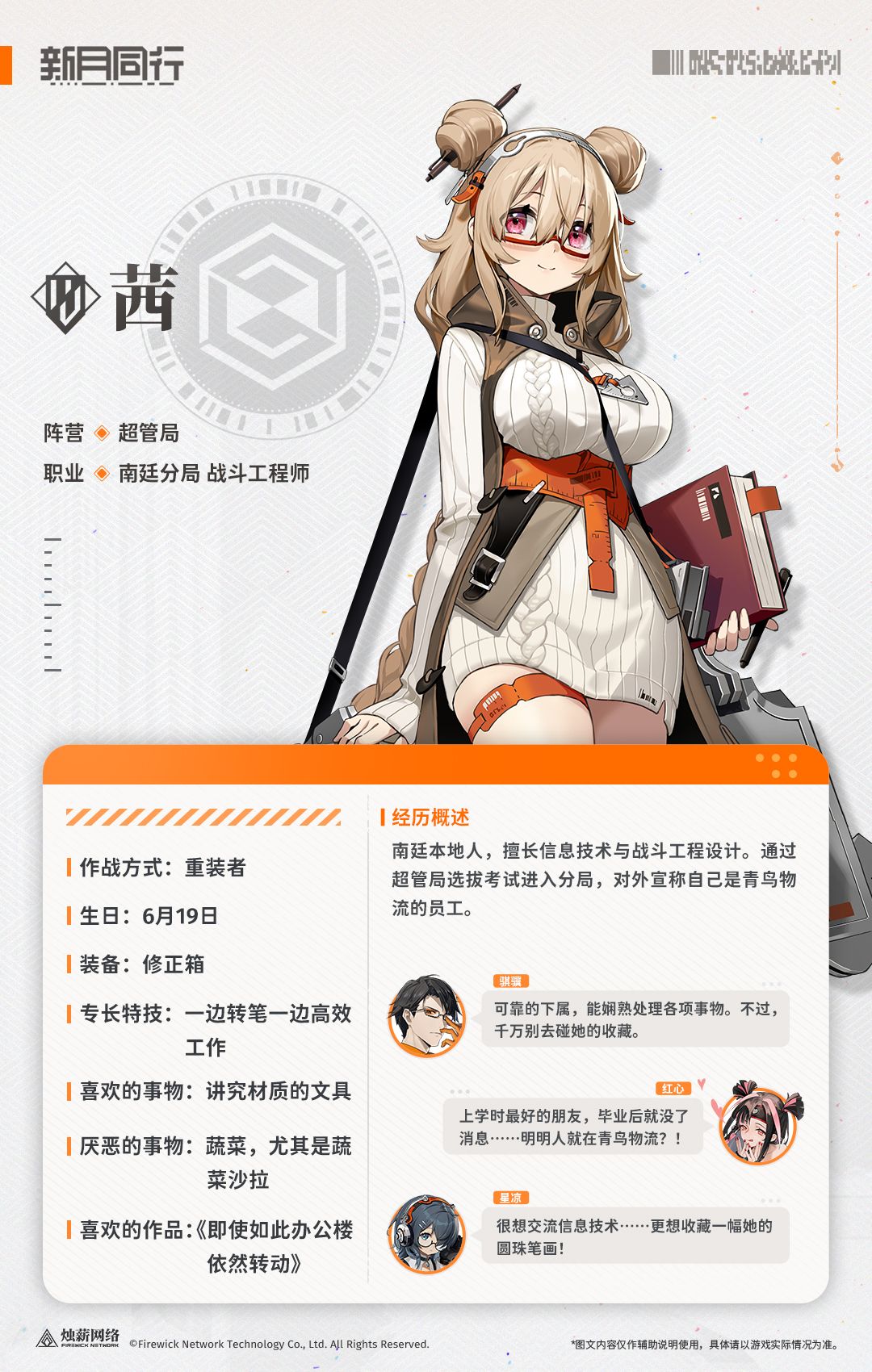 南廷本地人,擅长信息技术与战斗工程设计。通过超管局选拔考试进入分局,对外宣称自己是青鸟物流的员工。