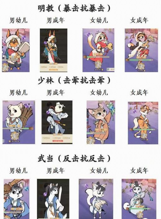徒弟培养时注意保留红色无双品质 和 金色传奇 品质的徒弟,其余徒弟直接找给包子高的结就行,按照目前的主流流派克制关系: