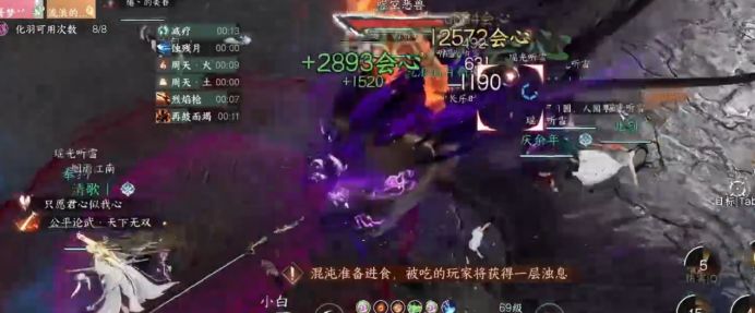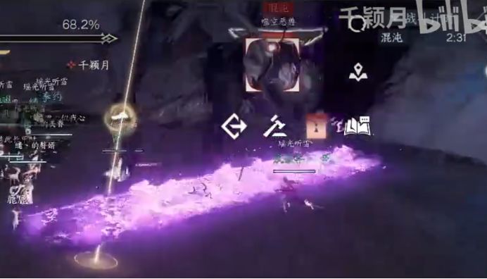 第二次变小混沌,抓人起飞,进入平台上混沌浊息的圈内,击杀三个混沌浊息可以让BOSS进入破防姿态!