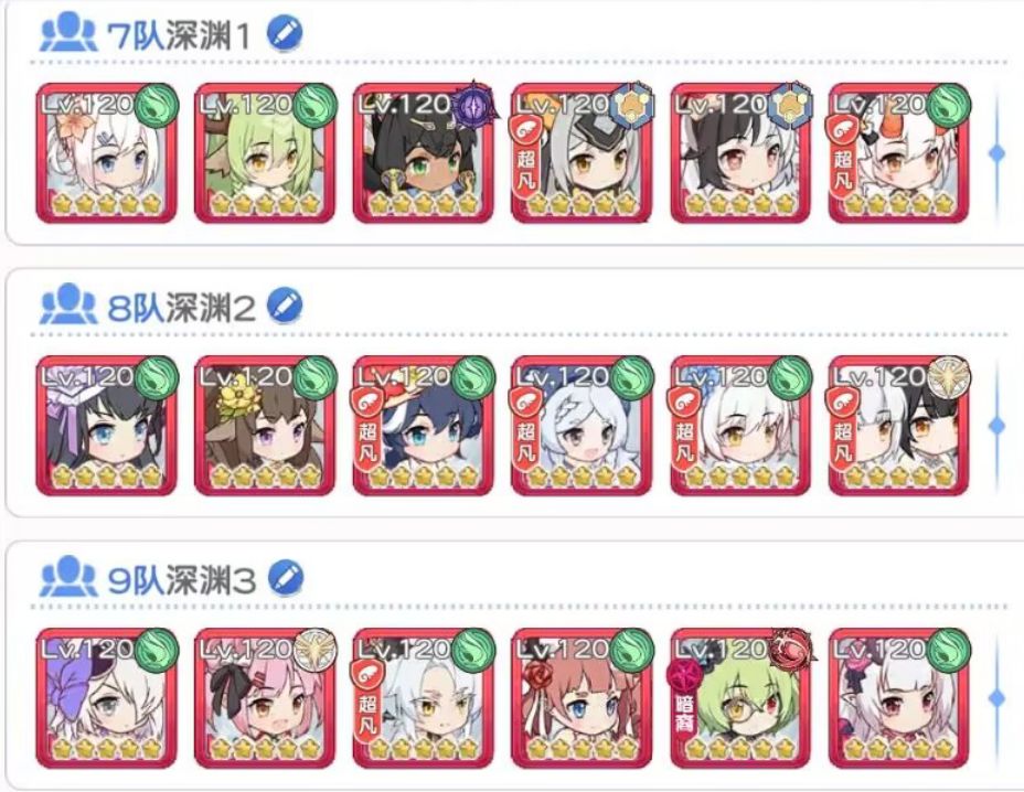 3、深渊阵容配队: