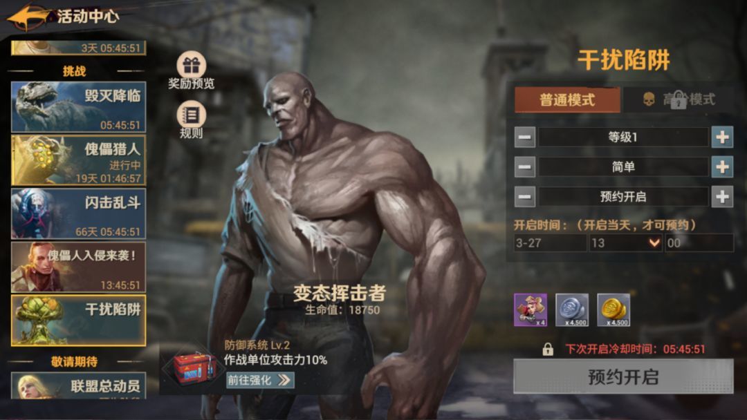 【闪击乱斗】【干扰陷阱】以及【傀儡人入侵】是必须要加入联盟才能解锁的周期性玩法,这三种玩法虽然有一个活动的时间段,但具体开启的时间都是联盟管理层设定的。如果你是联盟管理,最好活动开启前通过邮件告知联盟成员,防止错过。