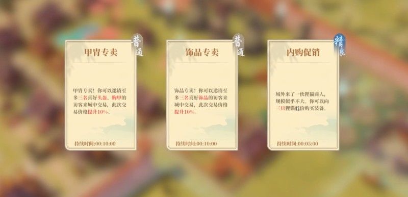 另外,客栈还会定时刷新特殊事件,可以低价收购,或者提高价格卖出,也有增加好感度、提升居民养成等各种各样的事件,覆盖了多种玩法。不过我最喜欢的还是低买高卖,谁不喜欢搞钱呢?