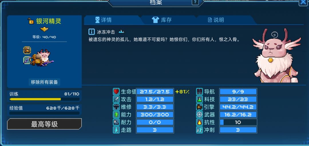 小鹿推荐纯血4修,也可以副修引擎装备:血量>抗性>攻击>维修>耐力