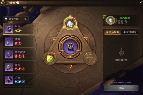 镶嵌分为单色宝石和多彩宝石,装备最多会出现3个插槽。