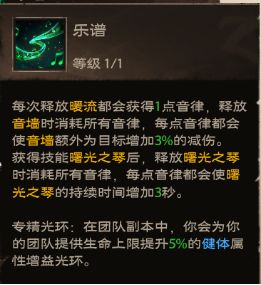 吟游诗人的协奏专精,是擅长持续治疗的专精。独特的职业量谱乐谱可积攒音律,一共可以积攒5点音律,消耗全部音律可以强化3技能的效果。