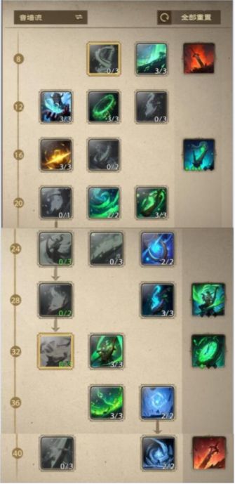 优先将5个铭石孔点亮,其次点亮所有主属性孔1级,补齐其余专精、冷却孔使属性达到34暴击、10冷却,最后多余的点数可以激活3级1层核心增加命运回响效果的持续时间。