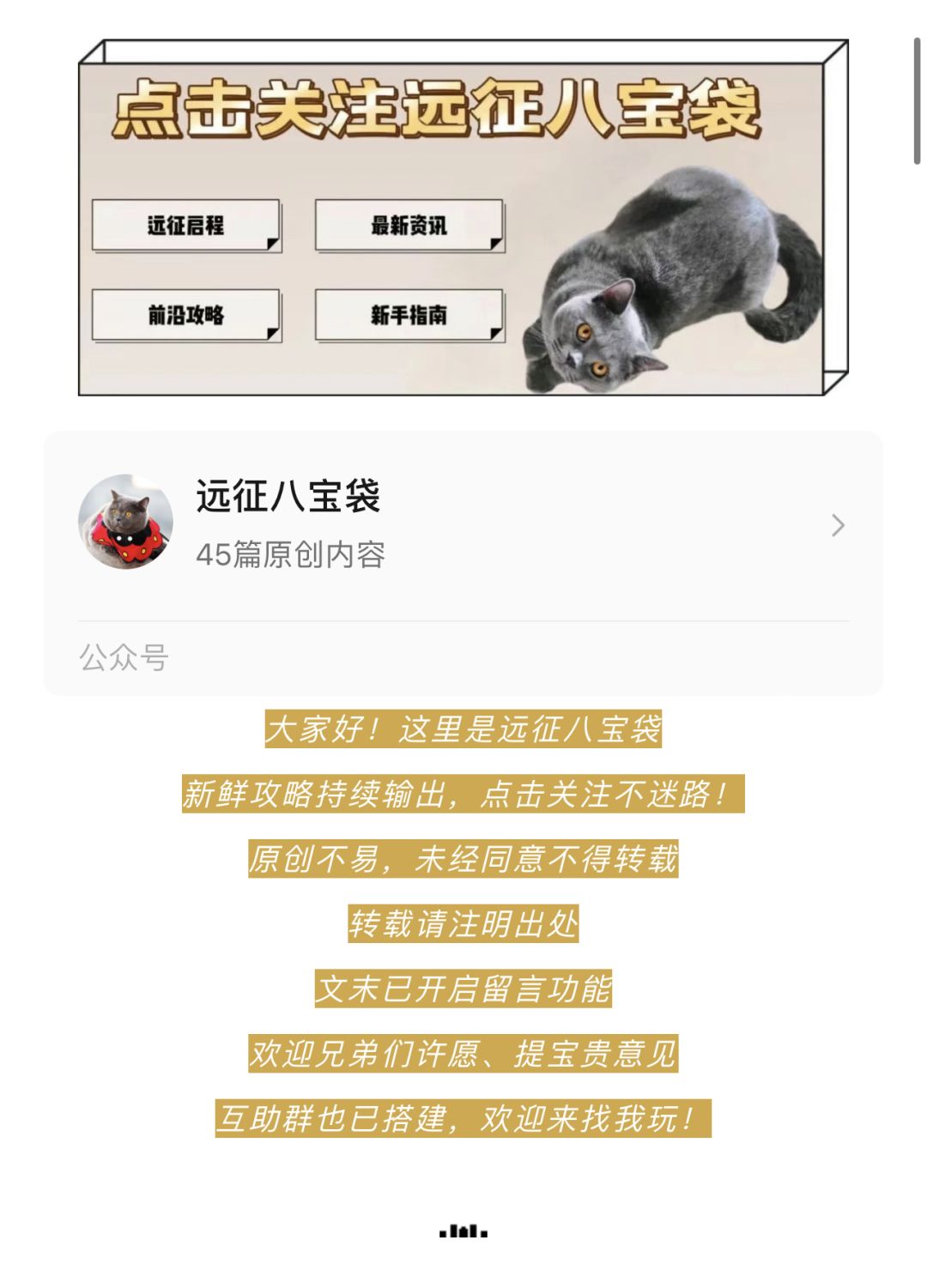 二维码好像不让发了,大家在公众号“远征八宝袋”获取吧