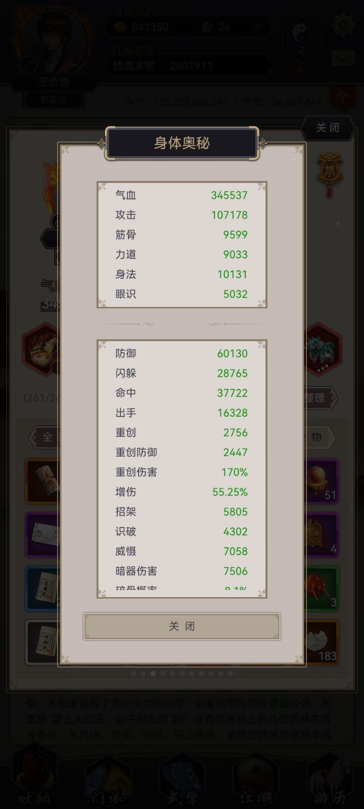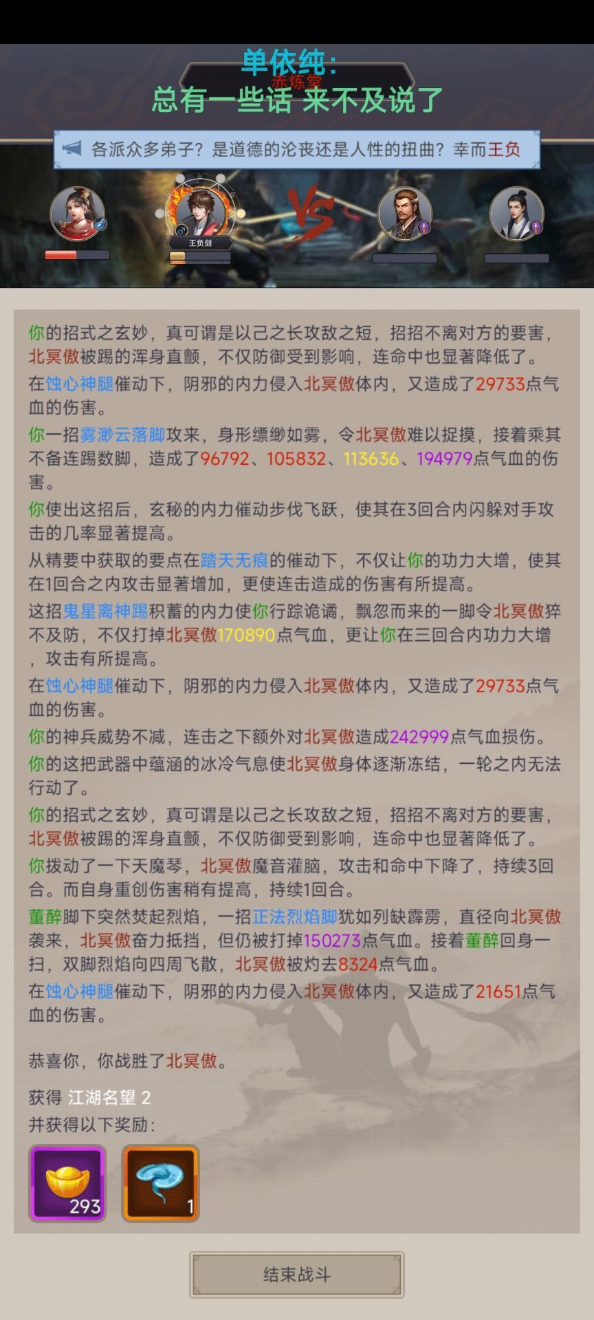 追风没上,上雾渺提升的30%闪避主要用来避免五人组小怪拳的技能,运气好可以闪五人组,而且最重要的一点是,可以多赌一些闪避。