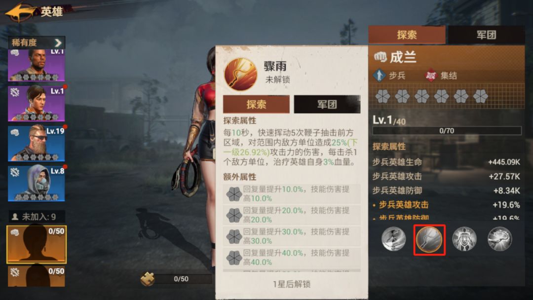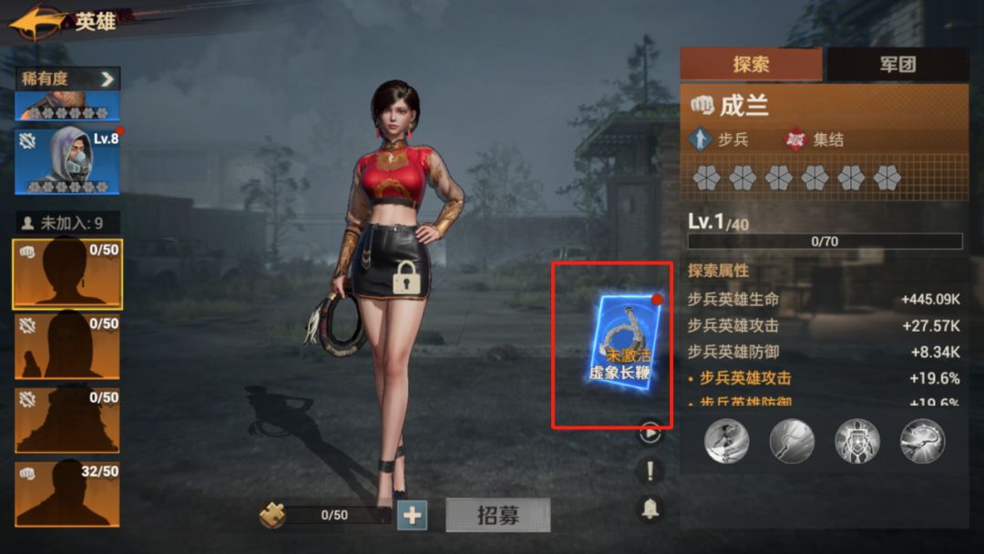2、获取的通用金色英雄碎片可以多数留给成兰,毕竟成兰是难得有英雄武器的角色。再加上她的二技能中自带战斗回血效果,对于探索关卡的推进也能更效率。