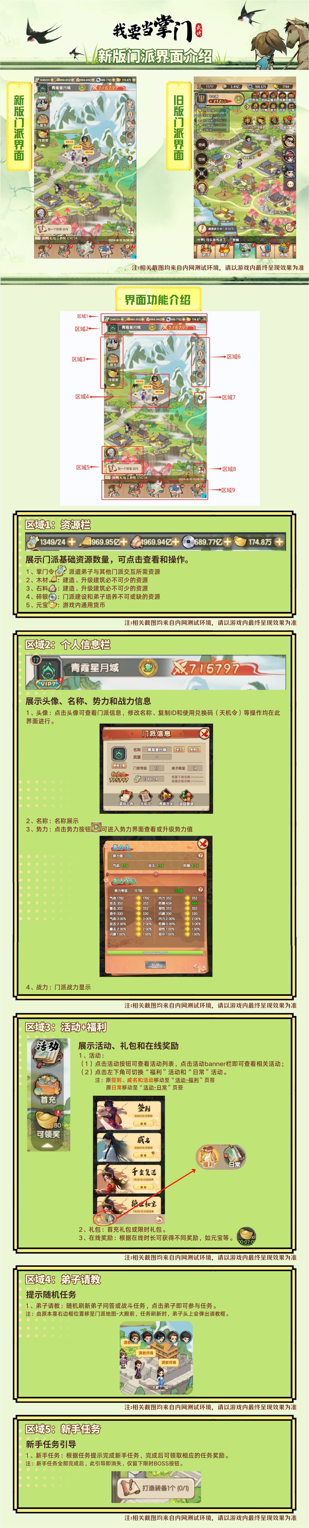 下次更新后就会和各位掌门见面了,欢迎掌门体验!