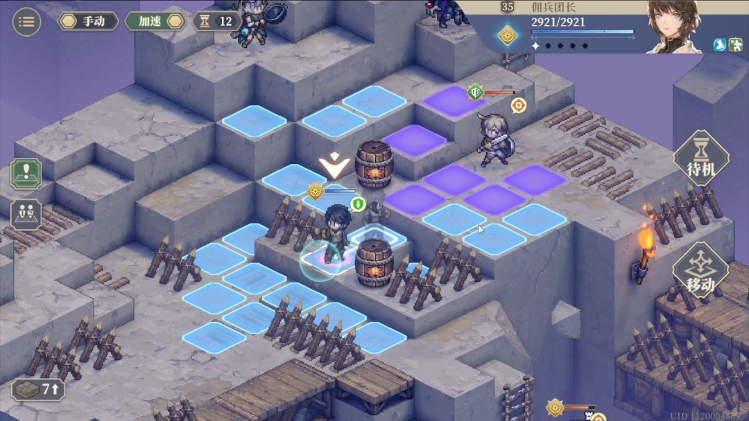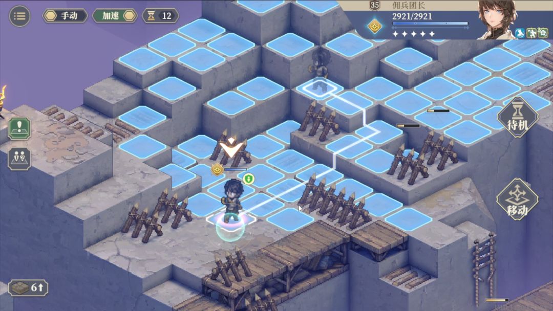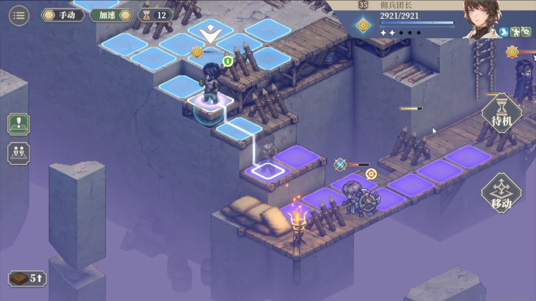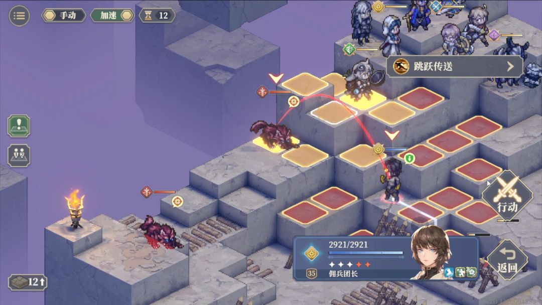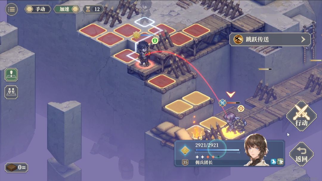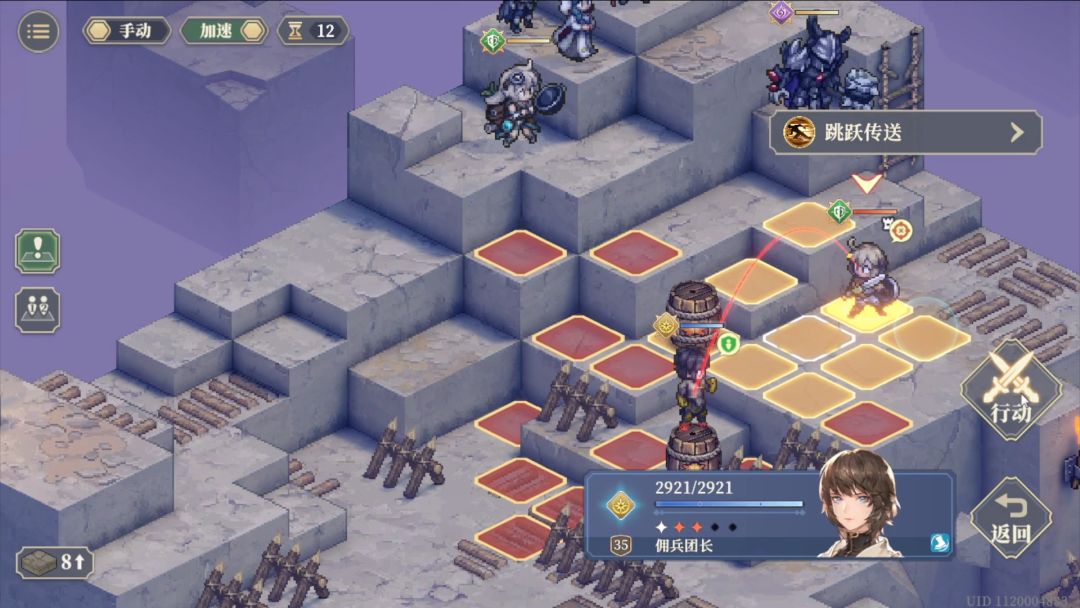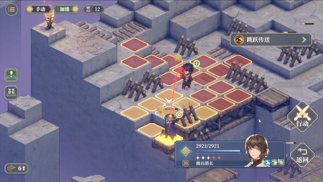 第1回合跳跃传送到麦莎面前,然后向下3格普攻后再往下一格待机。